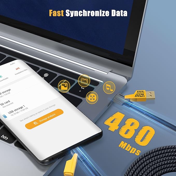 High-Speed Charging and Data Transfer: Experience the power of 5A fast charging and efficient data transfer rates of up to 480Mbps. This cable is designed to keep your devices charged and ready to go, while also allowing for quick data synchronization.