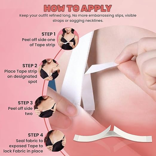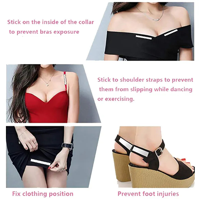 The tape is made with industrial-strength yet skin-safe adhesive that keeps your clothing securely in place all day. Despite its powerful grip, it remains completely invisible under clothes, giving you a flawless, natural look without bulky pins, clips, or visible lines.